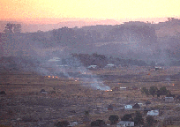 Burning stalks after harvest to refertilize the land -- a view at sunset from Domboshawa. (Click on this picture to obtain a larger image, which take longer to download.) Photographs © George P. Landow. Scan of original negative by Imager. Images may be used without written permission for any educational purpose. Any commercial or other use requires prior written permission from [email protected].