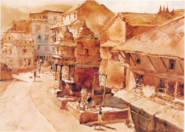 Morning in Kathmandu by Ong Kim Seng.   Year: 1981. Medium: Watercolour. Size: 73 x 53 cm.