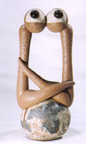Bewitched, 1992 (Fig. 39) is perhaps the most interesting of Eng Teng's cast-in-Thailand bronzes and can be considered a forerunner of the Torso-to-Face group of works which emerged two years later. It is part human and part a figment of the artist's imagination. Here, humanity merges into a broader nature and consciousness slips into dream. Head, upper arms and legs are missing in this drastically abbreviated work. It is frontally and symmetrically composed, with arms folded enigmatically below the breasts which seem on the verge of doubling up as eyes. This eye-breast interchangeability is fully evolved in Small Eyes, 1994 (Fig. 40) which is among the earliest in the Torso-to-Face series and closely related to Sitting Pretty A, 1994 (Fig. 41).