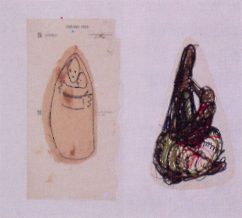 Studies for "Mother and Child" by Ng Eng Teng (nationality: Singaporean). Year: 1969. Medium: Ink & felt pen on paper. Size: 33 x 43cm.