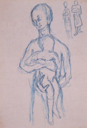 Father and Child Ng Eng Teng Nationality: Singaporean. Year: c1979. Medium: Blue felt pen on paper. Size: 28 x 19cm. |