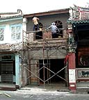 The restoration continues on Jalan Tun Tan Cheng Lock: repairs on a building next to the Eng Chen Boon Association.