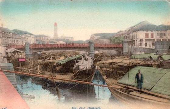 "Boat Quay, Singapore." No publisher indicated, but printed lower left corner of image: "4." Postmarked 1909.